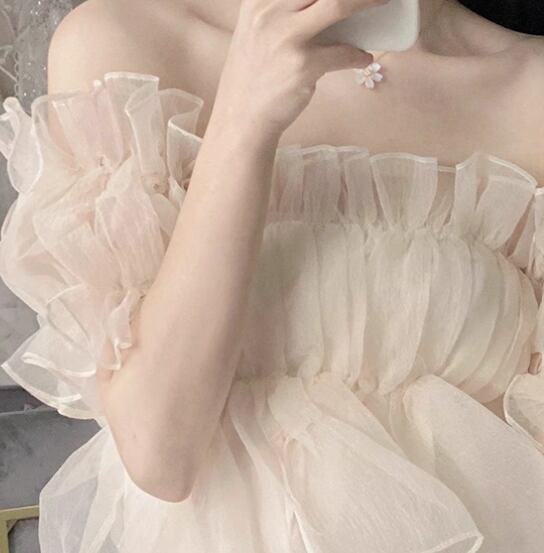 トップス ブラウス オフショルダー オフショル 肩出し 肩見せ フリル チュール シアー ボリュームスリーブ パフスリーブ バルーンスリーブ ベージュ オフホワイト アイボリー 淡色 かわいい 大人可愛い きれいめ フェミニン ガーリー 上品 エレガント 春 夏 デート パーティー お呼ばれ 韓国ファッション