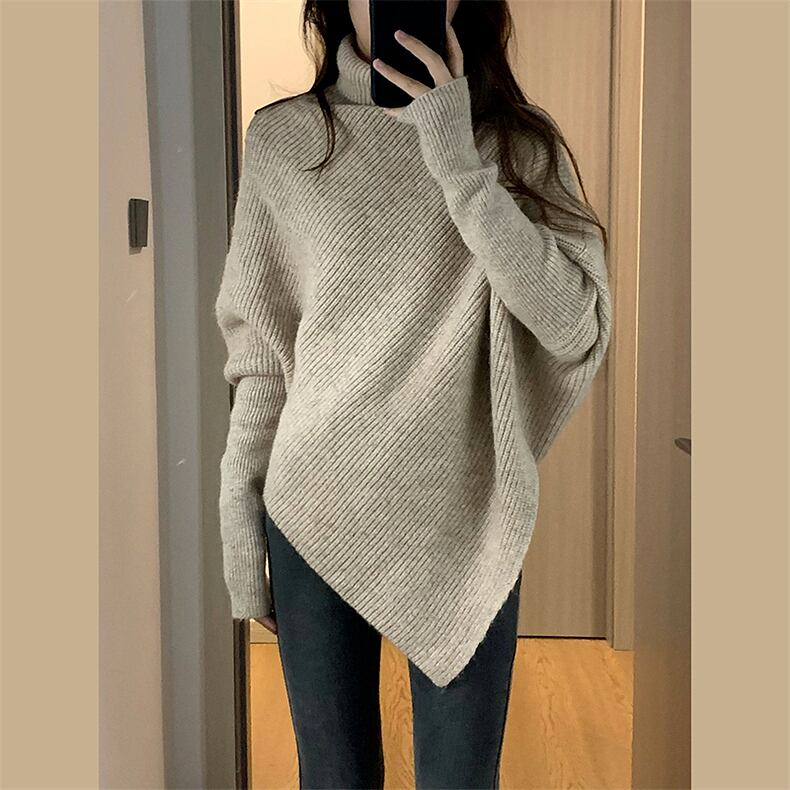 ハイネックニットセーター カジュアルニット アシメントリートップス トップス セーター プルオーバー 袖あり 長袖 ドルマンスリーブ 萌袖 Uネック ハイネック スリム タイト ワイド アシンメトリー スマート ふわふわ かわいい 大人可愛い きれいめ シンプル カジュアル 大人 上品 おしゃれ お洒落 大人可愛い 大人女子 こなれ感 個性的 クール モード系 エレガント 主役級 存在感 抜け感 無地 春 秋 冬 20代 30代 40代 50代 レディース 女性用 ママ