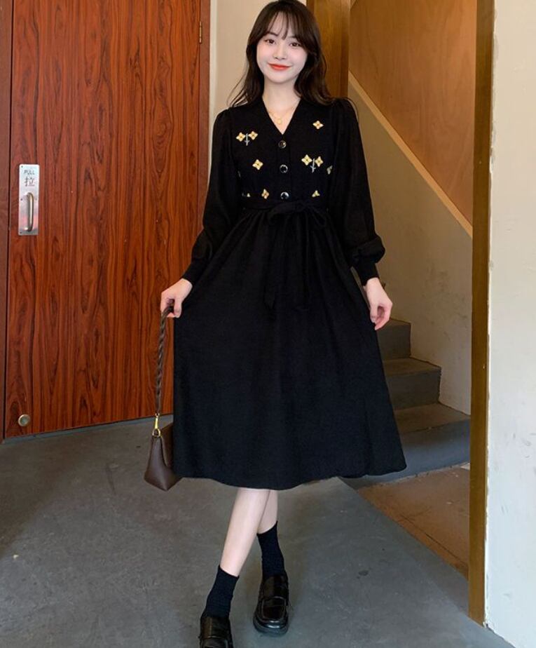 デート モテアイテム フレアワンピース ミモレ丈 長袖 Vネック ウエストマーク 大人可愛い きれいめ 上品 おしゃれ かっこいい 大人可愛い ラブリー キュート ガーリー クール モード系 セクシー エレガント 存在感 フォーマル レディース OL 通勤 学生 デート お出かけ 公園デビュー 女子会 休日 ホテル ショッピング 普段使い 双子 韓国系 オルチャン ファッション コーデ スタイル 暖かい 防寒 トレンド インスタ映え M L XL 2XL 3XL ジャスト サイズ ペールカラー