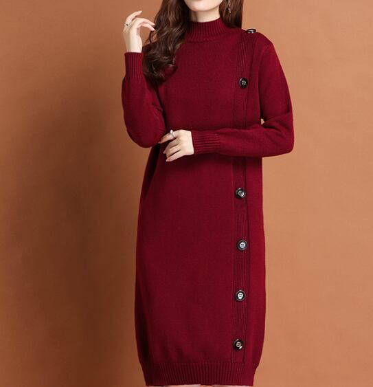 ニット膝丈ワンピース ニット ハイネック 暖かい ボタン 長袖 膝丈 サイズ豊富 伸縮性 爽やか かわいい 大人可愛い きれいめ シンプル カジュアル 上品 おしゃれ かっこいい レトロ アジアン 大人可愛い こなれ感 マニッシュ キュート ガーリー 爽やか ナチュラル 無地 秋 冬 10代 20代 30代 40代 50代 レディース 女性用 ママ 女の子 オフィス 通勤 学生 通学 デート お出かけ 女子会 休日 ファッション コーデ スタイル デート プレゼント ギフト 定番 ゆったり