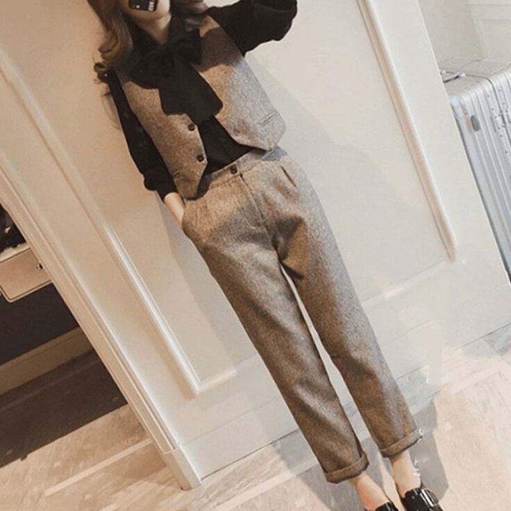 大人可愛い リボンタイ付 モードスタイル 3点セット スリーピース 着回し セットアップ ブラウス トップス アンクル丈 長袖 ボリューム袖 ストレート リボン かわいい きれいめ 上品 おしゃれ こなれ感 クール モード系 オールシーズン 入学式 入園式 結婚式 二次会 オフィス OL 大人スタイル 20代 30代 40代 50代 レディース ビジネス パーティー イベント 韓国系 オルチャン コーデ トレンド S M L XL 2XL ホワイト ブラック モノトーン ファッション スタイルアップ