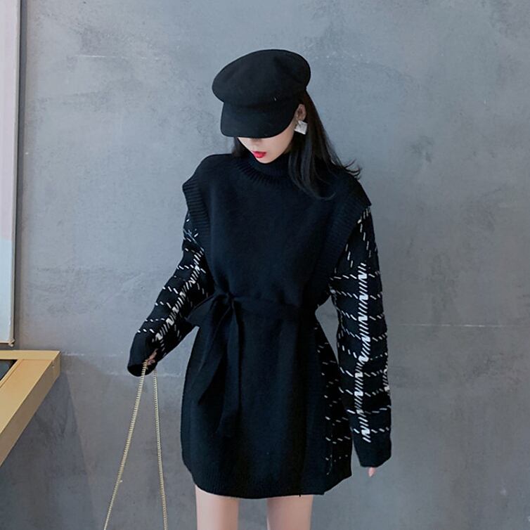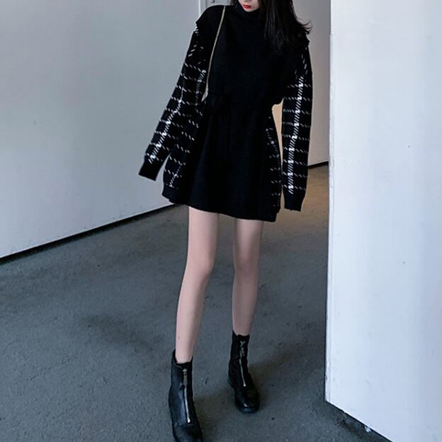 デザイン上級者ワンピ ワンピース ミニ丈 長袖 タートルネック ベルト ウエストマーク 大人可愛い きれいめ シンプル 大人 上品 おしゃれ お洒落 かっこいい 大人可愛い 大人女子 こなれ感 クール モード系 柄 チェック柄 春 秋 冬 20代 30代 40代 50代 レディース 女性用 学生 通学 デート お出かけ お泊まり パーティー イベント 着回し 韓国系 オルチャン ファッション コーデ スタイル モテ トレンド S M L XL 2XL 3XL 4XL ゆったり ホワイト ブラック