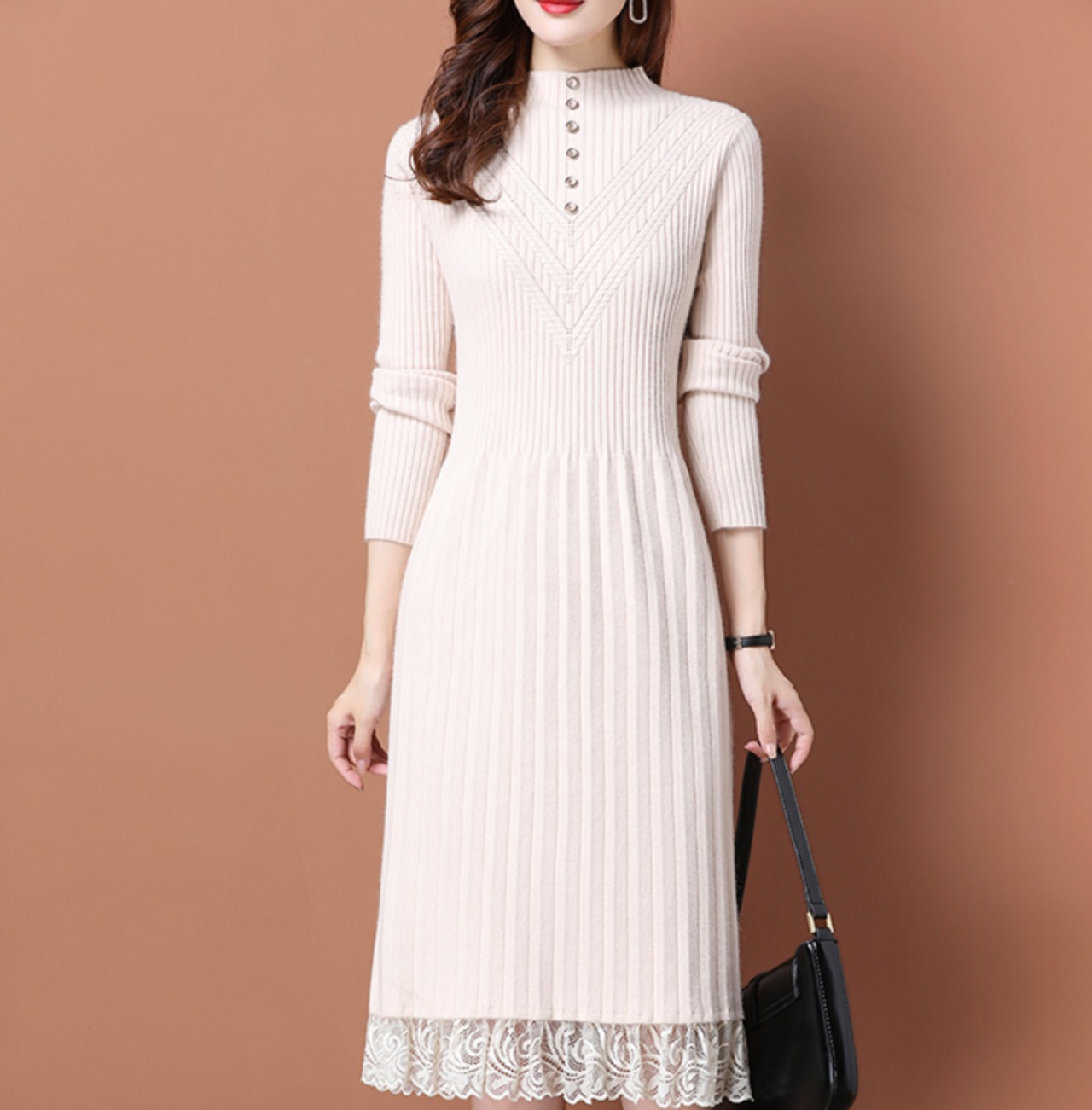 ワンピース デート レース モテアイテム ミモレ丈 長袖 ミドルネック リブニット 大人可愛い きれいめ 上品 おしゃれ かっこいい 大人可愛い ラブリー キュート ガーリー クール モード系 セクシー エレガント 存在感 フォーマル レディース OL 通勤 学生 デート お出かけ 公園デビュー 女子会 休日 ホテル ショッピング 普段使い 双子 韓国系 オルチャン ファッション コーデ スタイル 暖かい 防寒 トレンド インスタ映え M L XL 2XL 3XL サイズ くすみカラー 大人カラー