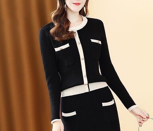 モノトーン配色 ニットスーツ セットアップ 2点セット トップス スカート スーツ 膝丈 ひざ丈 長袖 ラウンドネック タイト ウエストマーク 大人可愛い きれいめ 大人 上品 おしゃれ レトロ 大人可愛い 大人女子 こなれ感 クール モード系 セクシー エレガント 存在感 フォーマル 春 冬 誕生日 入園式 卒業式 卒園式 謝恩会 結婚式 二次会 クリスマス バレンタイン 20代 30代 40代 50代 レディース パーティー イベント ホテル レストラン 着回し スタイル モテ トレンド インスタ映え