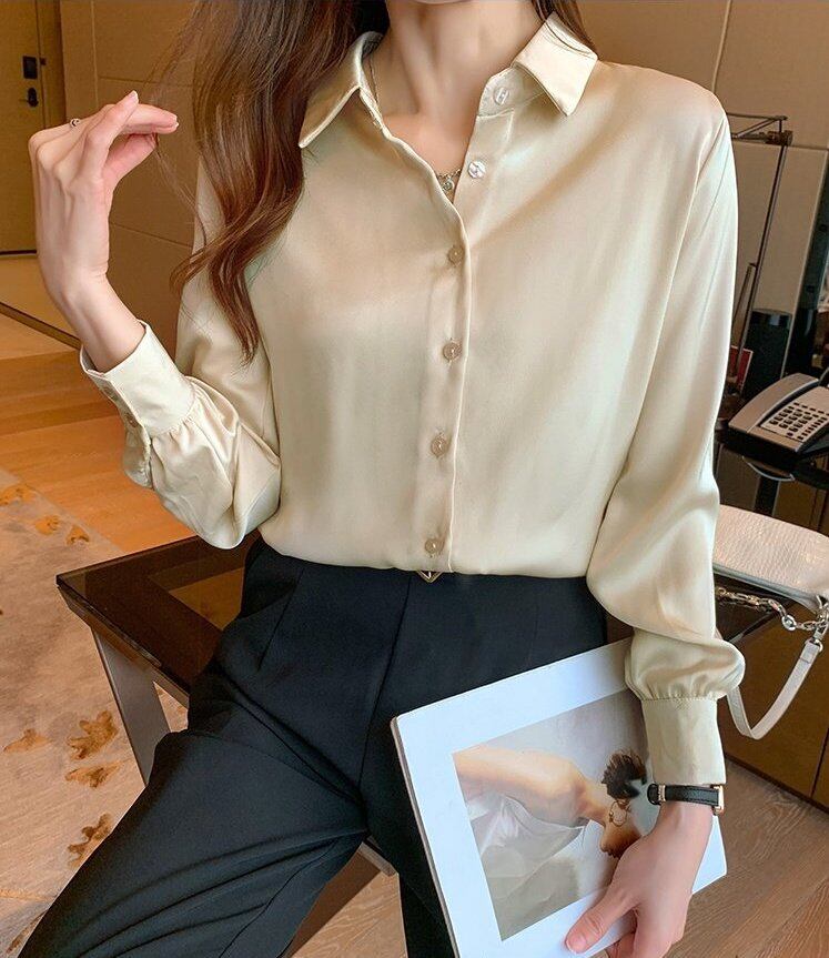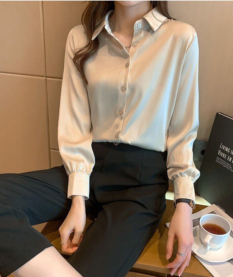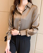 大人 上品 光沢 ブラウス トップス トップス 長袖 襟付き サテン きれいめ シンプル 大人 上品 おしゃれ かっこいい 大人可愛い 大人女子 クール モード系 セクシー エレガント 主役級 フォーマル 無地 シーズンレス 誕生日 成人式 入学式 入園式 卒業式 卒園式 謝恩会 結婚式 二次会 20代 30代 40代 50代 レディース ビジネス OL パーティー イベント ホテル レストラン 着回し モテ M L XL 2XL 3XL 4XL 白 光沢 シルク調 フェミニン ボタンブラウス