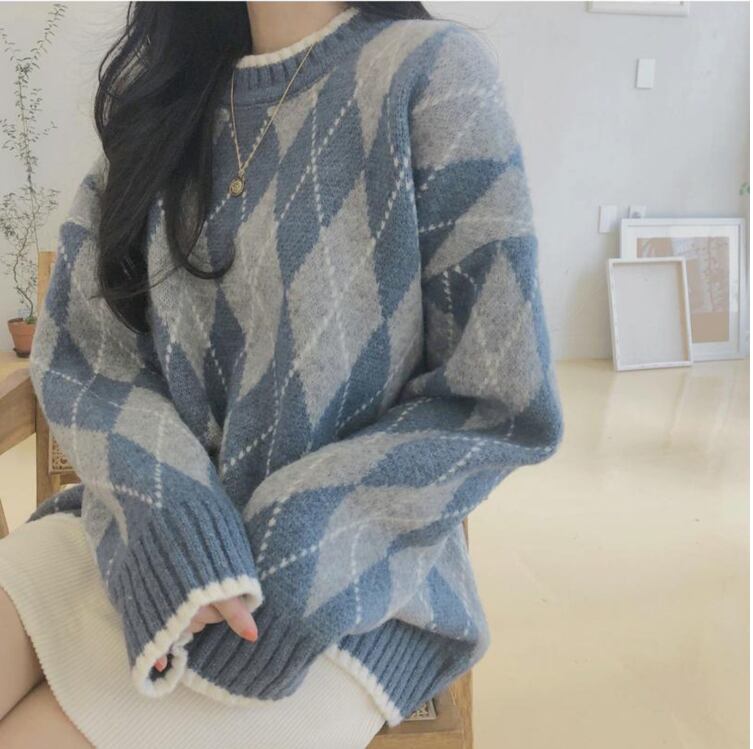 カジュアルニットセーター 長袖ニットセーター カレッジ風ニットセーター ゆったりセーター トップス セーター プルオーバー 袖あり 長袖 萌袖 Uネック ラウンドネック ワイド Iライン スマート ふわふわ ニット かわいい 大人可愛い きれいめ シンプル カジュアル 大人 上品 おしゃれ お洒落 レトロ 大人可愛い 大人女子 こなれ感 ラフ ボーイッシュ キュート ガーリー ルーズ モード系 エレガント 主役級 存在感 柄 チェック柄 格子柄 秋 冬 20代 30代