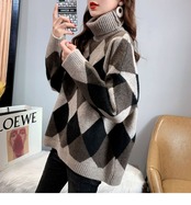 ダイヤ柄のタートルネックビックシルエットニットです。