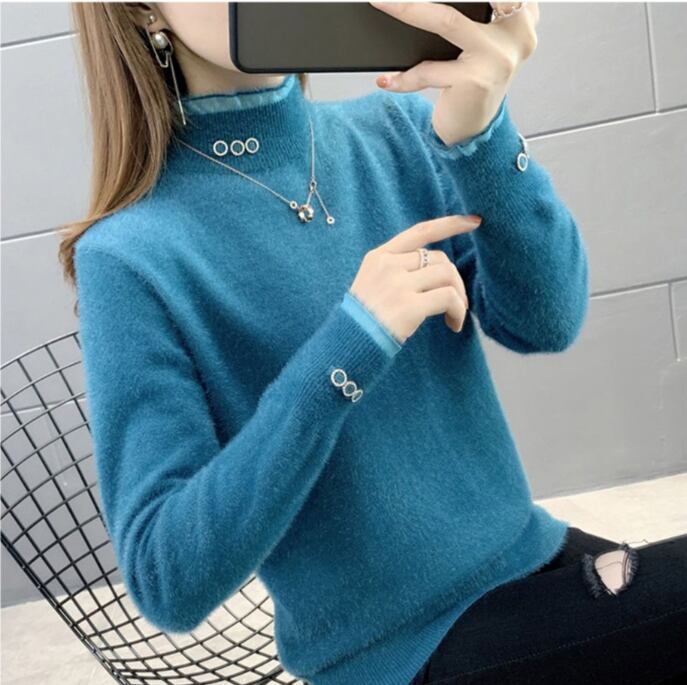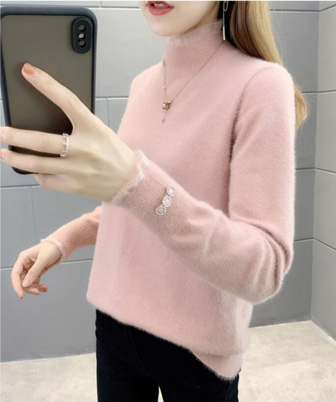 長袖ニットセーター カジュアルトップス ハイネックニットセーター 冬ニットセーター トップス セーター プルオーバー 袖あり 長袖 萌袖 ハイネック スリム 細身 Iライン スマート レース フリル ニット かわいい 大人可愛い きれいめ シンプル カジュアル 大人 上品 おしゃれ お洒落 大人可愛い 大人女子 こなれ感 ラブリー キュート ガーリー 個性的 エレガント 主役級 存在感 無地 秋 冬 20代 30代 40代 50代 レディース 女性用 ママ