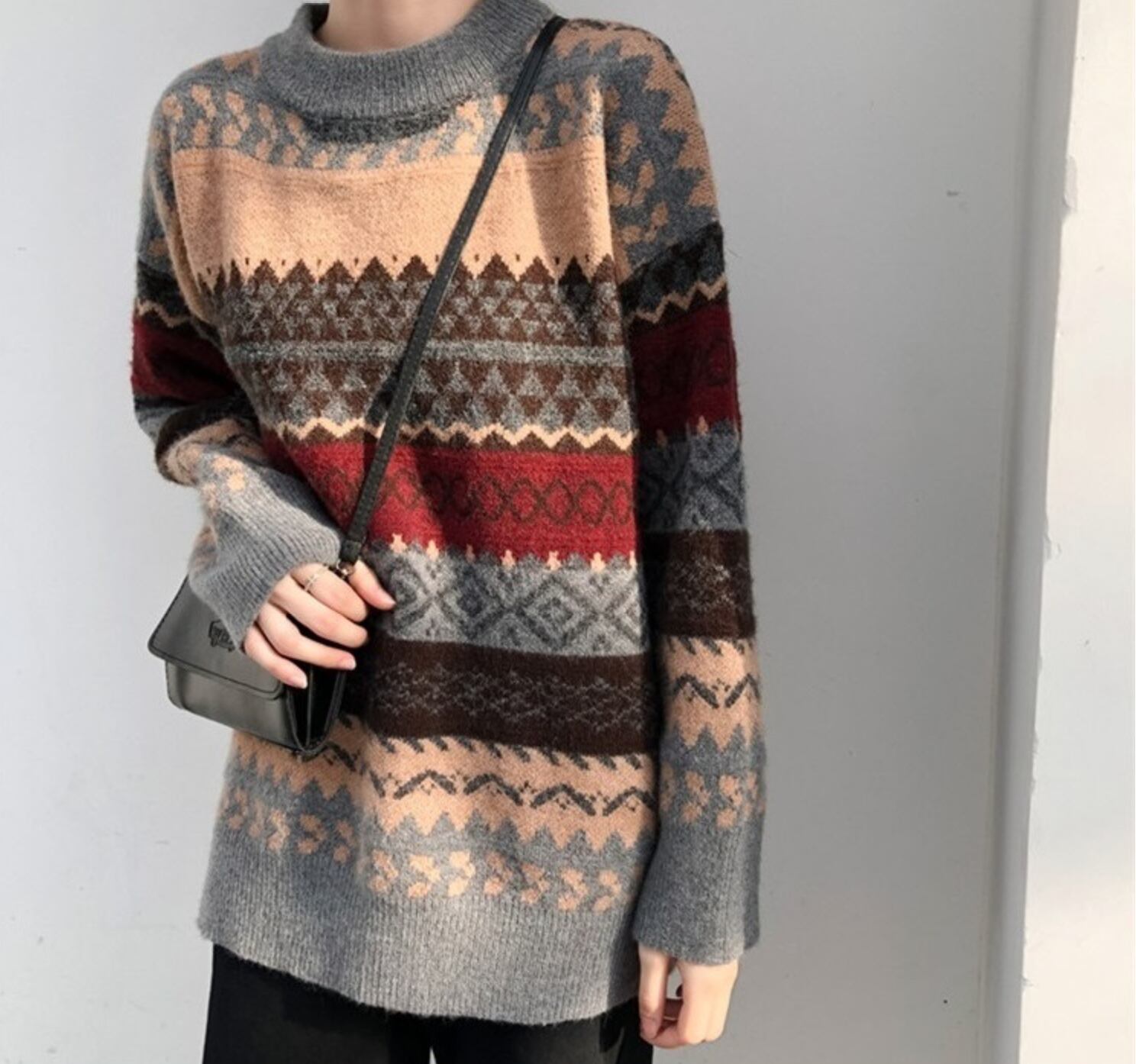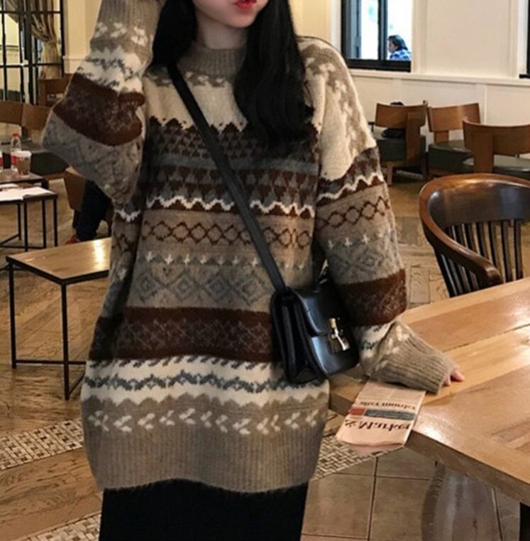 ノルディック柄ニット ビッグシルエット プルオーバー トップス デート セーター 長袖 ラウンドネック ニット かわいい 大人可愛い きれいめ カジュアル 上品 おしゃれ レトロ エスニック 大人可愛い こなれ感 ラフ メンズライク ボーイッシュ スポーティー ルーズ 個性的 抜け感 柄 秋 冬 クリスマス 10代 20代 30代 40代 レディース ママ 通勤 学生 通学 デート 休日 ショッピング 着回し 普段使い お揃い 双子 オルチャン コーデ スタイル 暖かい 防寒 モテ トレンド インスタ映え