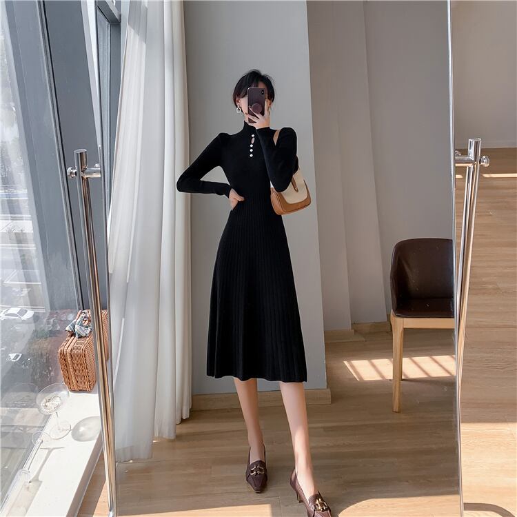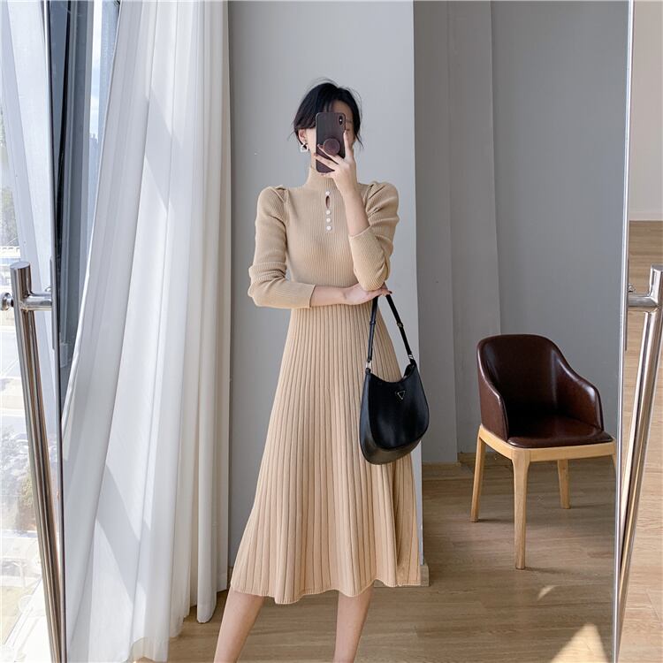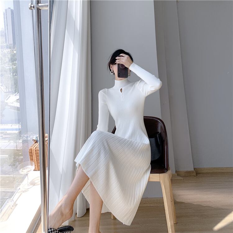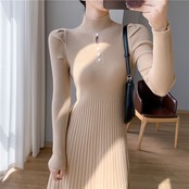 タイトでスマートなハイネックニットワンピース