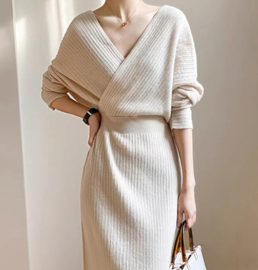 ワンピース デート モテアイテム ニットワンピ ミモレ丈 長袖 カシュクール スリム タイト リブニット ウール 大人可愛い きれいめ 上品 おしゃれ かっこいい 大人可愛い ラブリー キュート ガーリー クール モード系 セクシー エレガント 存在感 フォーマル レディース OL 通勤 学生 デート お出かけ 公園デビュー 女子会 休日 ホテル ショッピング 普段使い 双子 韓国系 オルチャン ファッション コーデ スタイル 暖かい 防寒 トレンド インスタ映え S M L XL サイズ くすみカラー
