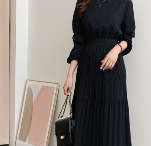 大人っぽい無地のロングワンピースです。