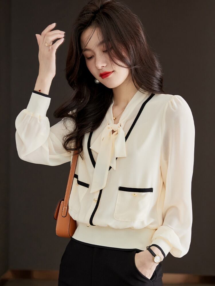 シフォン リボンタイ 重ね着風 ブラウス トップス カットソー 白シャツ 長袖 Vネック ドッキング 大人可愛い きれいめ シンプル 大人 上品 おしゃれ かっこいい レトロ 大人可愛い 大人女子 こなれ感 クール モード系 セクシー フォーマル 無地 春 秋 入学式 入園式 卒業式 卒園式 謝恩会 二次会 20代 30代 40代 50代 ビジネス OL 通勤 パーティー イベント 着回し 重ね着 オルチャン ファッション コーデ スタイル モテ トレンド インスタ映え ホワイト 大人カラー