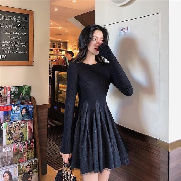ニットとチュールの組み合わせでふんわり可愛いミニワンピ