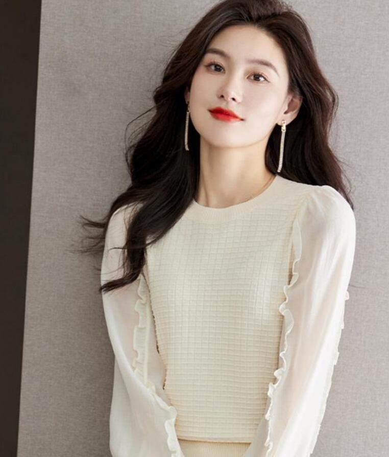 トップス デート モテアイテム ブラウス カットソー ミックスニット ざっくりニット 長袖 フリル 大人可愛い きれいめ 上品 おしゃれ かっこいい 大人可愛い ラブリー キュート ガーリー クール モード系 セクシー エレガント 存在感 フォーマル レディース OL 通勤 学生 デート お出かけ 公園デビュー 女子会 休日 ホテル ショッピング 普段使い 双子 韓国系 オルチャン ファッション コーデ スタイル 暖かい 防寒 トレンド インスタ映え S M L XL 2XL サイズ くすみカラー