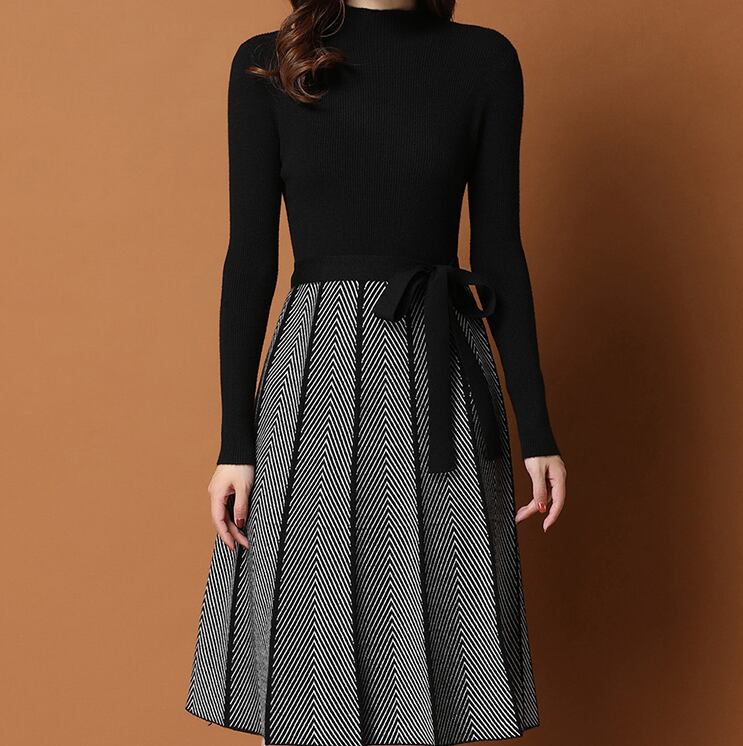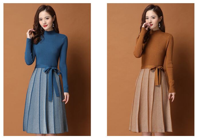 セットアップ風のプリーツスカートが可愛いニットワンピース