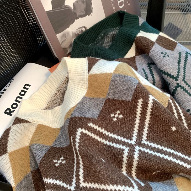トップス ニット セーター ニットソー プルオーバー 袖あり 長袖 Uネック ラウンドネック 幾何学 ジオメトリック柄 ひし形 柄 ノスタルジック レトロ かわいい 大人可愛い きれいめ シンプル カジュアル 大人 上品 おしゃれ 10代 20代 30代 レディース 女の子 女子 通勤 学生 通学 デート お出かけ 公園デビュー 女子会 ランチ会 お泊まり 休日 着回し 普段使い 韓国 楽ちん モテ 定番 トレンド インスタ映え S M L XL グリーン 緑 アプリコット