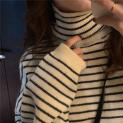 ゆったりニット トップス デート セーター トップス 長袖 ハイネック ストレート ニット かわいい シンプル カジュアル 大人 おしゃれ お洒落 かっこいい 大人可愛い 大人女子 ラフ ボーイッシュ クール ストライプ 秋 冬 10代 20代 30代 レディース 女性用 ママ 女の子 通勤 学生 通学 デート お出かけ 女子会 お泊まり 休日 運動 旅行 ショッピング 着回し 普段使い コーデ スタイル XL 2XL 3XL ゆったり ゆる ホワイト ブラック XL 2XL 3XL