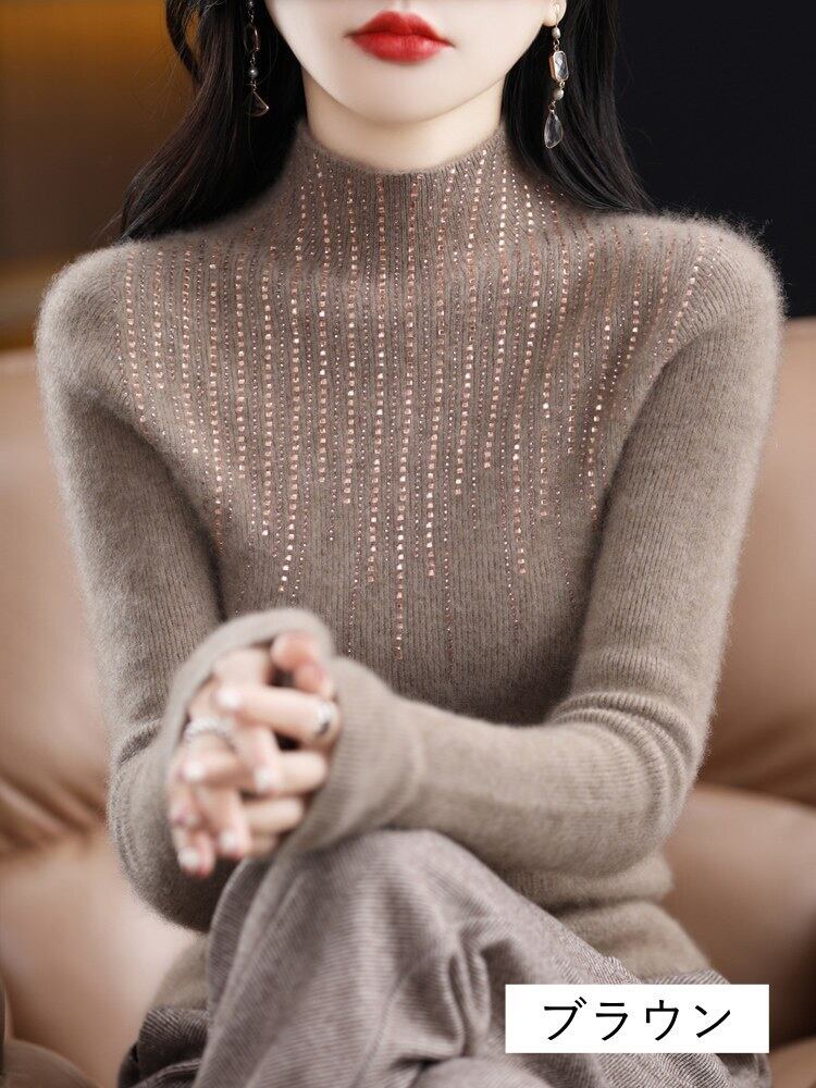 首元は窮屈感のないモックネックで、タートルやハイネックが苦手な方でも取り入れやすいデザインです。
