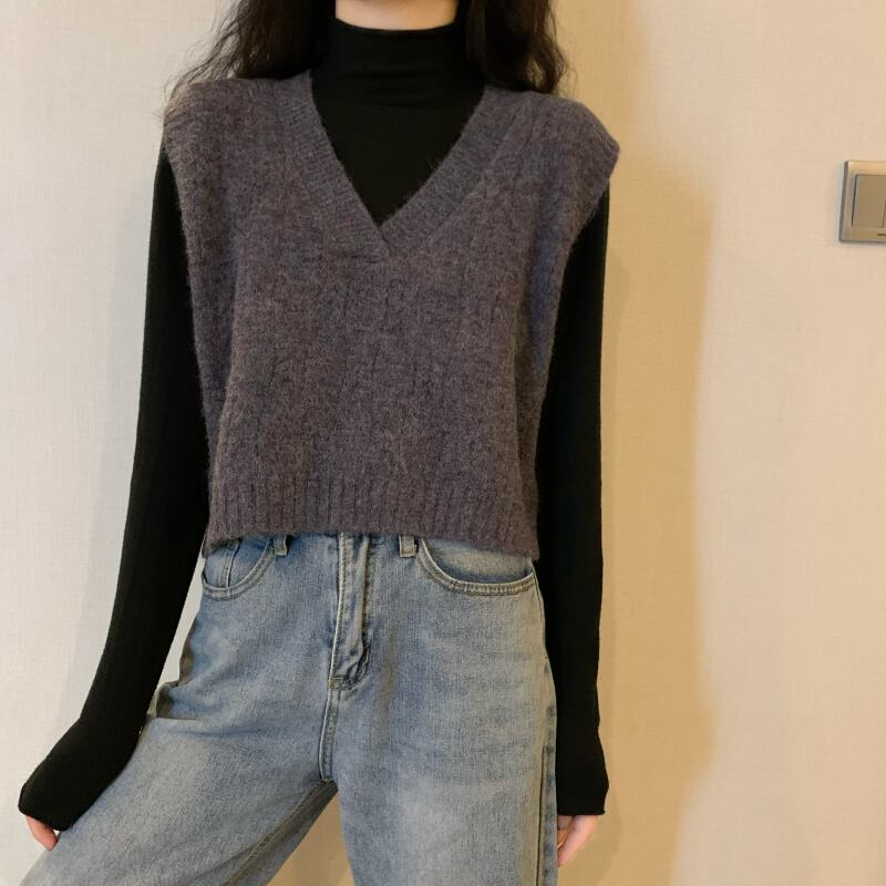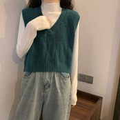 シンプルな中にある編み込みデザインが大人可愛いニットベスト