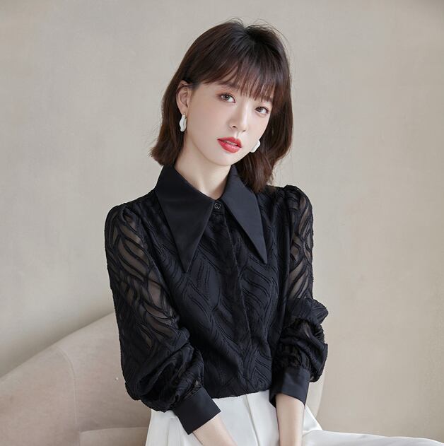 透け感トップス リーフ柄シフォンシャツ 春ドレスシャツ エレガントシフォンシャツ トップス シャツ ブラウス カットソー 袖あり 長袖 Vネック 襟付き スリム ストレート Iライン スマート シフォン 前開き かわいい 大人可愛い きれいめ シンプル カジュアル 大人 上品 おしゃれ お洒落 大人可愛い 大人女子 こなれ感 ガーリー 個性的 クール モード系 セクシー エレガント モダン 主役級 存在感 リーフ柄 ボタニカル 春 秋 10代 20代 30代 40代