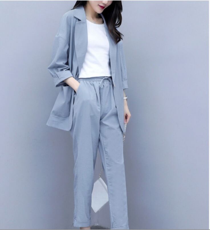 セットアップスーツ カジュアルスーツセット 9分丈ボトムス 春夏スーツセット トップス ボトムス アウター セットアップ ジャケット ストレートパンツ ロング ロング丈 9分丈 アンクル丈 袖あり 長袖 Vネック 襟付き スリム ストレート Iライン スマート ハイウエスト 前開き ウエストゴム かわいい 大人可愛い きれいめ シンプル カジュアル 大人 上品 おしゃれ お洒落 かっこいい レトロ 大人可愛い 大人女子 こなれ感 ボーイッシュ 個性的 クール モード系