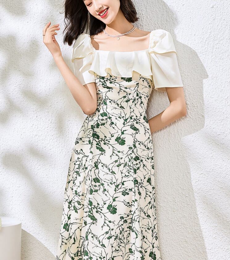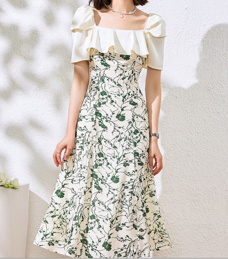 リゾートワンピース パーティーワンピース ボタニカル柄ワンピース スクエアネックワンピース スカート ワンピース プルオーバー オールインワン ロングスカート フレアスカート 膝下 ロング ロング丈 7分丈 ミディアム丈 袖あり 半袖 5分袖 五分袖 スクエアネック スリム タイト 細身 Aライン 切り替えデザイン スマート シフォン フリル おしゃれ お洒落 レトロ 大人可愛い 大人女子 こなれ感 ラブリー キュート ガーリー 個性的 モード系 セクシー エレガント