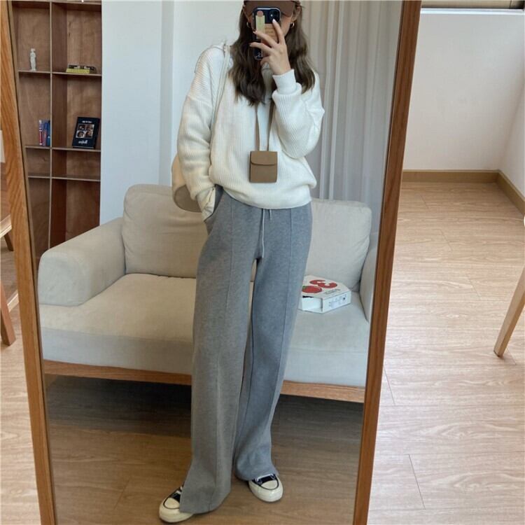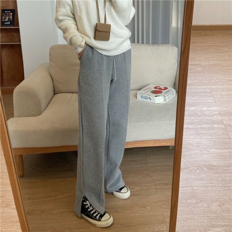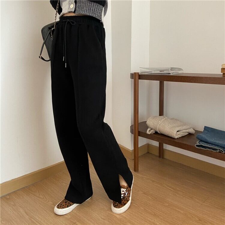 ボトムス ズボン パンツ スウェット ストレートパンツ センタープレス ストレート サイドスリット ウエストゴム シンプル カジュアル おしゃれ お洒落 大人女子 こなれ感 ラフ メンズライク ボーイッシュ スポーティー ルーズ 抜け感 無地 春 夏 秋 冬 オールシーズン シーズンレス 10代 20代 30代 40代 50代 60代 レディース 女性用 ママ お出かけ 公園デビュー 休日 運動 着回し 普段使い コーデ 楽ちん 体系カバー 美脚 脚長 M L XL 2XL 黒 ブラック 灰色 グレー
