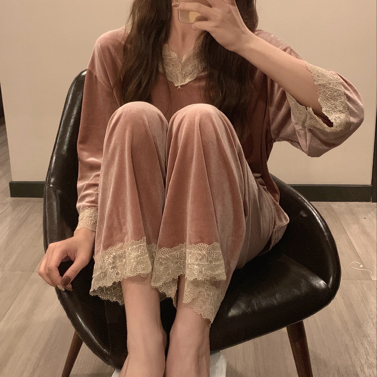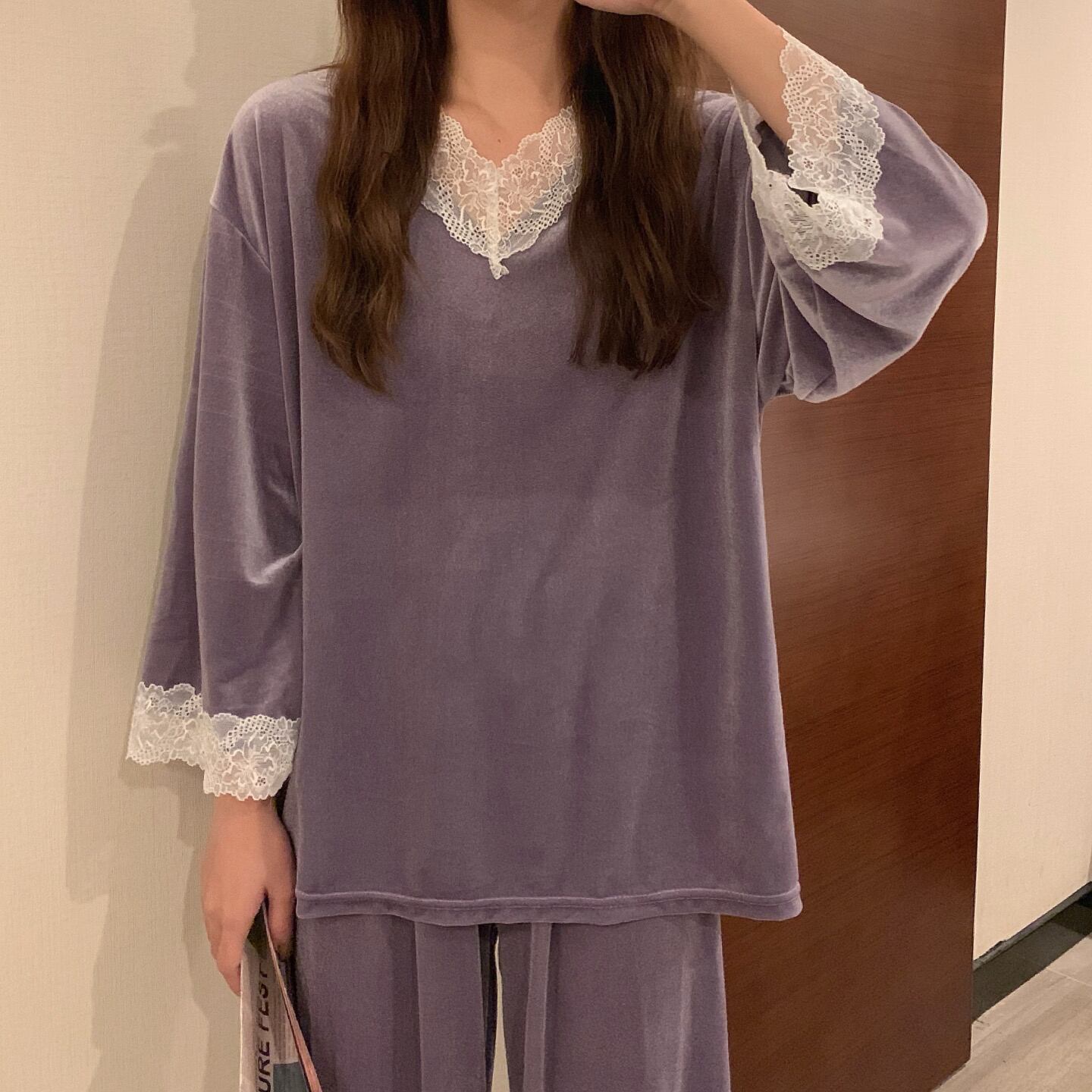 セットアップ ルームウェア パジャマ 全4色 部屋着 寝巻き ナイトウェア 袖あり 長袖 Vネック ストレート レース ベロア 上下セット 2点セット ツーピース かわいい 大人可愛い きれいめ シンプル カジュアル 大人 上品 おしゃれ お洒落 大人女子 こなれ感 ラブリー キュート ガーリー 無地 春 秋 冬 10代 20代 30代 40代 レディース 女性用 お泊まり 双子 韓国 インスタ映え ゆったり くすみカラー バイカラー 秋カラー ニュアンス グリーン 緑 ピンク 水色 ブルー パープル