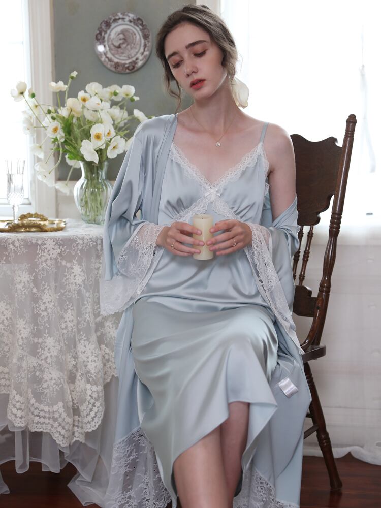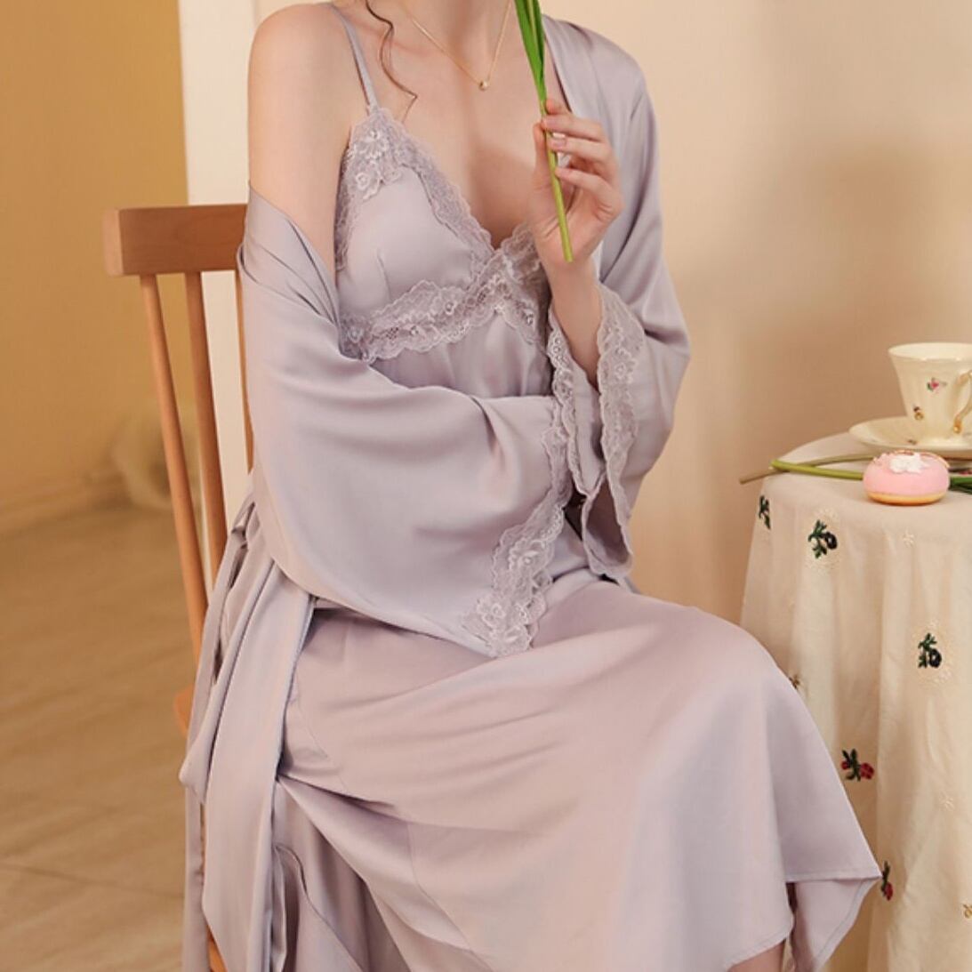 セットアップ ルームウェア パジャマ 全4色 ガウン ネグリジェ サテン 部屋着 寝巻き ナイトウェア 袖あり 長袖 キャミワンピース ノースリーブ レース 2点セット ツーピース かわいい 大人可愛い きれいめ シンプル 大人 上品 おしゃれ お洒落 大人女子 こなれ感 ラブリー キュート ガーリー 無地 春 夏 秋 冬 10代 20代 30代 40代 レディース 女性用 お泊まり 双子 韓国 インスタ映え ゆったり くすみカラー ニュアンス 水色 パープル 紫 ホワイト ベージュ S M L XL
