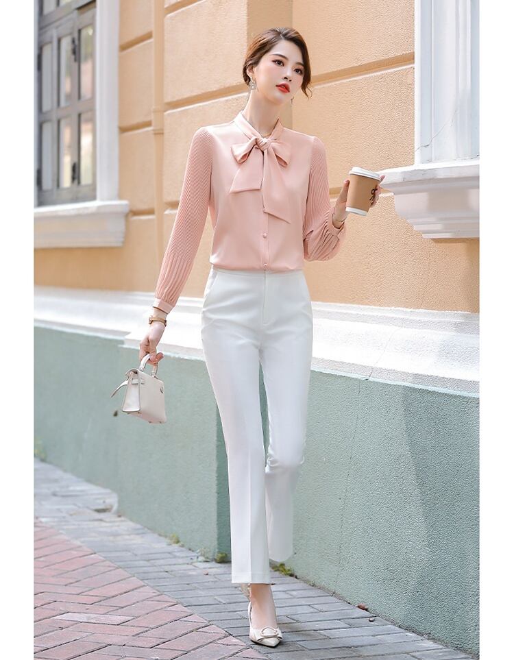 セットアップ ブラウス×パンツ スーツ 全3色 リボンタイ パールボタン ボトムス 袖あり プリーツ 長袖 スリム タイト 細身 上下セット 2点セット きれいめ シンプル カジュアル 大人 上品 おしゃれ お洒落 個性的 モード系 無地 春 夏 秋 冬 オールシーズン 成人式 入学式 入園式 卒業式 卒園式 謝恩会 結婚式 二次会 披露宴 20代 30代 40代 50代 レディース 女性用 ビジネス OL 通勤 女子会 休日 着回し 韓国 美脚 脚長 S M L XL 2XL 3XL 4XL 5XL