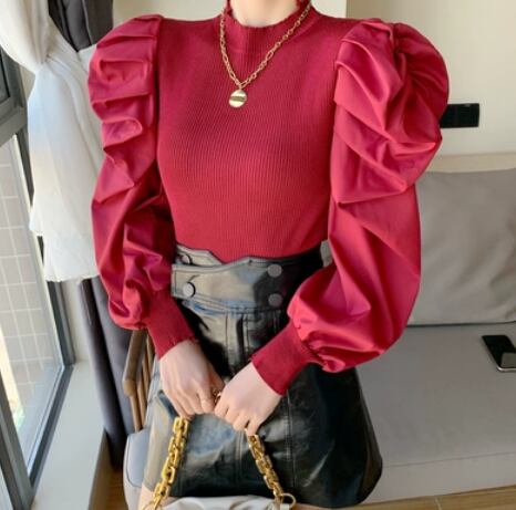 ボリューム袖ハイネックトップス 長袖 タイト 異素材 タイト S M ホワイト ブラック ピンク レッド パーティー 結婚式 2次会 フォーマル カジュアル 上品 おしゃれ かっこいい 大人可愛い こなれ感 存在感 クール 個性的 無地 秋 冬 春 10代 20代 30代 40代 50代 レディース 女性用 ママ 女の子 通勤 学生 通学 デート お出かけ 女子会 着回し お揃い ファッション コーデ スタイル デート イベント クラブ プレゼント 目立つ 流行 インスタ映え