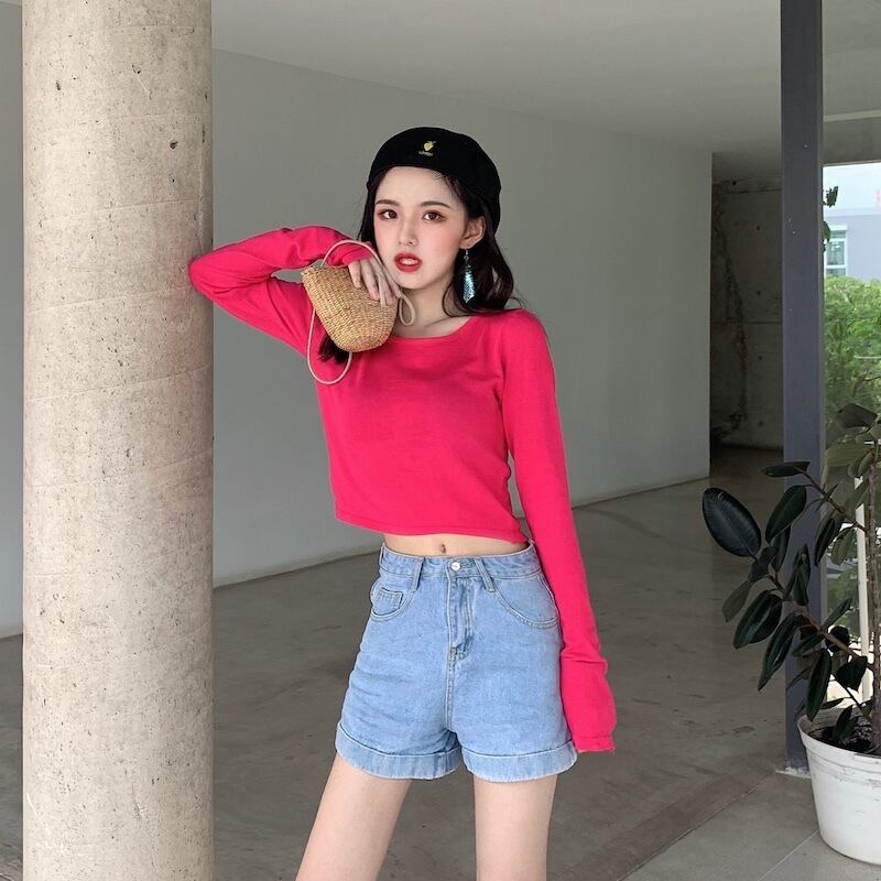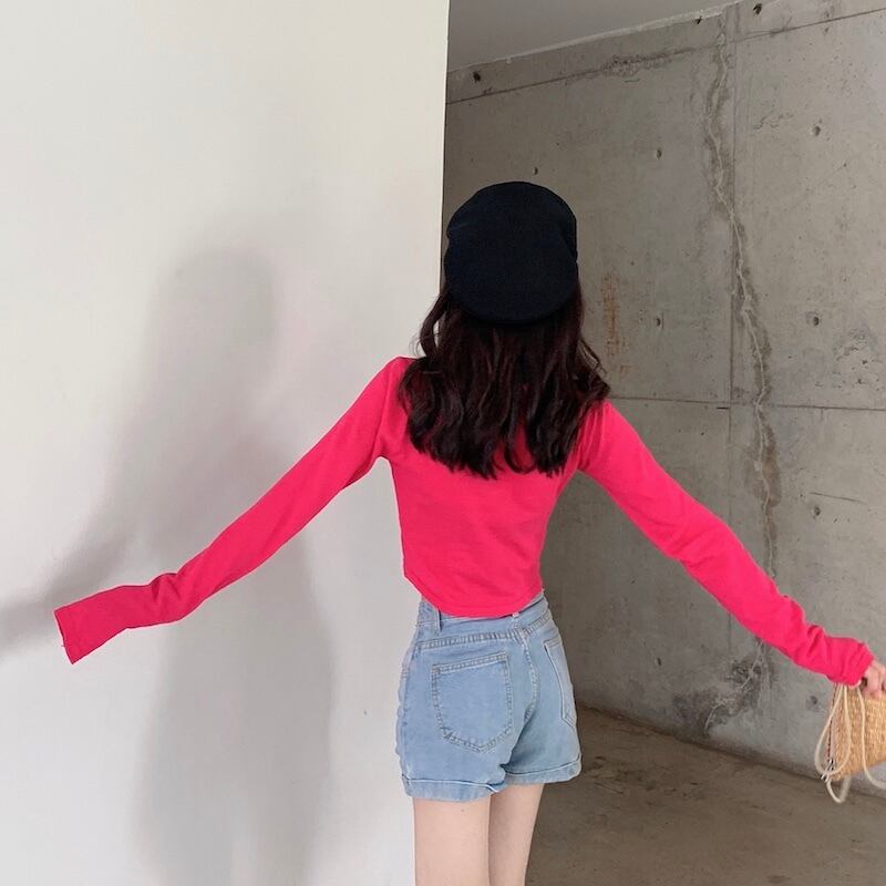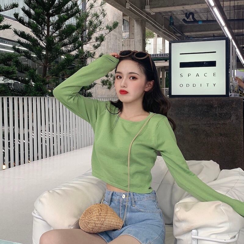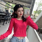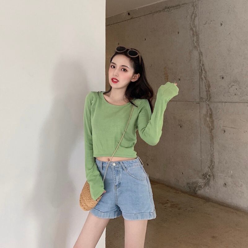 トップス Tシャツ カットソー 全4色 長袖 萌え袖 ショート丈 大人可愛い ラウンドネック シンプル カジュアル ナチュラル 春 秋 冬 着回し おしゃれ 大人可愛い セクシー モード 着回し 重ね着 レディース デート お出かけ 女子会 ショッピング 普段使い 双子 韓国系 オルチャン ファッション コーデ 着痩せ スタイルアップ 美脚 脚長 トレンド 流行 インスタ映え タイト スリム 細身 スタイルアップ 10代 20代 30代 40代 白 ホワイト 黒 ブラック グリーン 緑 ピンク 無地