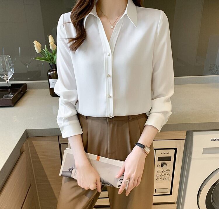 トップス シャツ ブラウス 白シャツ 白トップス 袖あり 長袖 Vネック シフォン かわいい 大人可愛い きれいめ シンプル 大人 上品 おしゃれ お洒落 大人可愛い 大人女子 こなれ感 クール セクシー エレガント フォーマル 無地 春 夏 20代 30代 40代 レディース 女性用 ビジネス OL 通勤 通学 デート お出かけ リクルート 着回し 普段使い 韓国系 オルチャン ファッション コーデ モテ サイズ S M L XL 2XL 色展開 白 ホワイト 青