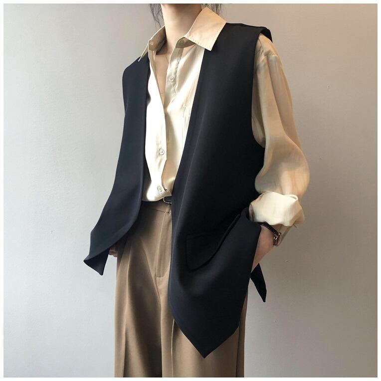 バックスリット入りベスト カジュアルロング丈ベスト スーツベスト ルーズデザインベスト トップス アウター ベスト 上着 スーツ ロング ロング丈 袖なし ノースリーブ Vネック スリム ストレート Iライン スマート スリット バックスリット 前開き かわいい 大人可愛い きれいめ シンプル カジュアル 大人 上品 おしゃれ 大人可愛い 大人女子 こなれ感 ラフ 個性的 クール モード系 エレガント モダン 主役級 存在感 無地 春 秋 20代 30代