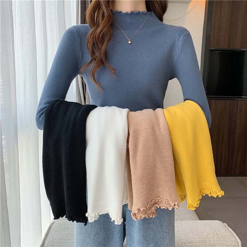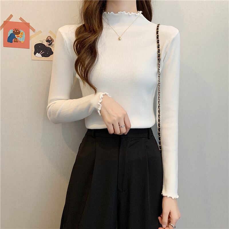 トップス ニットソー 全5色 長袖 ハイネック かわいい 大人可愛い シンプル カジュアル 薄手 伸縮性 着回し おしゃれ 大人可愛い ラブリー キュート ガーリー 存在感 レディース デート お出かけ フリル 女子会 ショッピング 普段使い 双子 韓国系 オルチャン ファッション コーデ スタイル 美脚 脚長 トレンド 流行 インスタ映え タイト スリム 細身 スタイルアップ モノクロ 白 ホワイト 黒 ブラック ブルー 青 ベージュ イエロー 黄色 くすみカラー ニュアンスカラー カラバリ