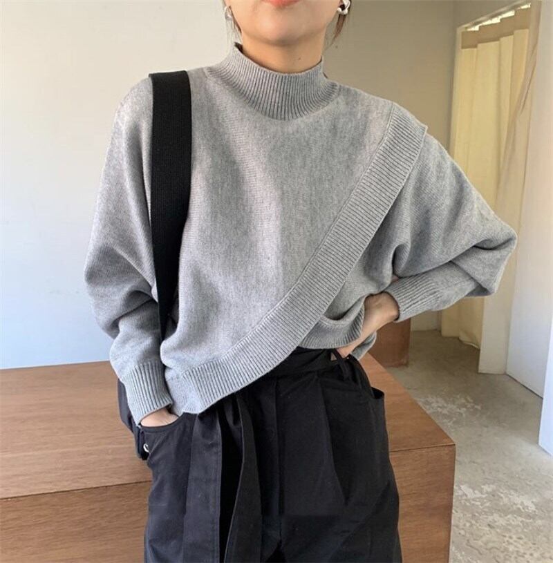 長袖ニットセーター 秋冬ショート丈ニット プルオーバートップス カジュアルニットセーター トップス ニットソー セーター プルオーバー ショート丈 袖あり 長袖 ボリューム袖 Uネック ハイネック スリム ストレート Iライン 切り替えデザイン スマート ニット かわいい 大人可愛い きれいめ シンプル カジュアル 大人 上品 おしゃれ お洒落 大人可愛い 大人女子 こなれ感 ラフ 個性的 クール モード系 エレガント モダン 主役級 存在感 秋 冬 20代 30代