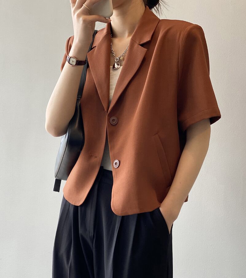 アウター モテアイテム ジャケット 半袖 大人可愛い きれいめ 上品 おしゃれ かっこいい 大人可愛い ラブリー キュート ガーリー クール モード系 セクシー エレガント 存在感 フォーマル レディース 学生 通学 デート お出かけ 公園デビュー 女子会 お泊まり 休日 運動 ショッピング 普段使い 双子 韓国系 オルチャン ファッション コーデ スタイル 美脚 脚長 トレンド 流行 インスタ映え S M L ゆったり サイズ くすみカラー 大人カラー ベイクドカラー