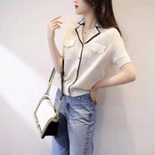 エレガントカジュアル ジャン袖ニットシャツ ストライプ入りシャツ オフィスカジュアル トップス シャツ ブラウス ニットソー セーター 白トップス 袖あり 半袖 5分袖 五分袖 Vネック 襟付き スリム タイト 細身 Iライン スマート リブニット かわいい 大人可愛い きれいめ シンプル カジュアル 大人 上品 おしゃれ お洒落 大人可愛い 大人女子 こなれ感 ラフ キュート ガーリー 個性的 クール モード系 エレガント モダン 主役級 存在感 春 夏