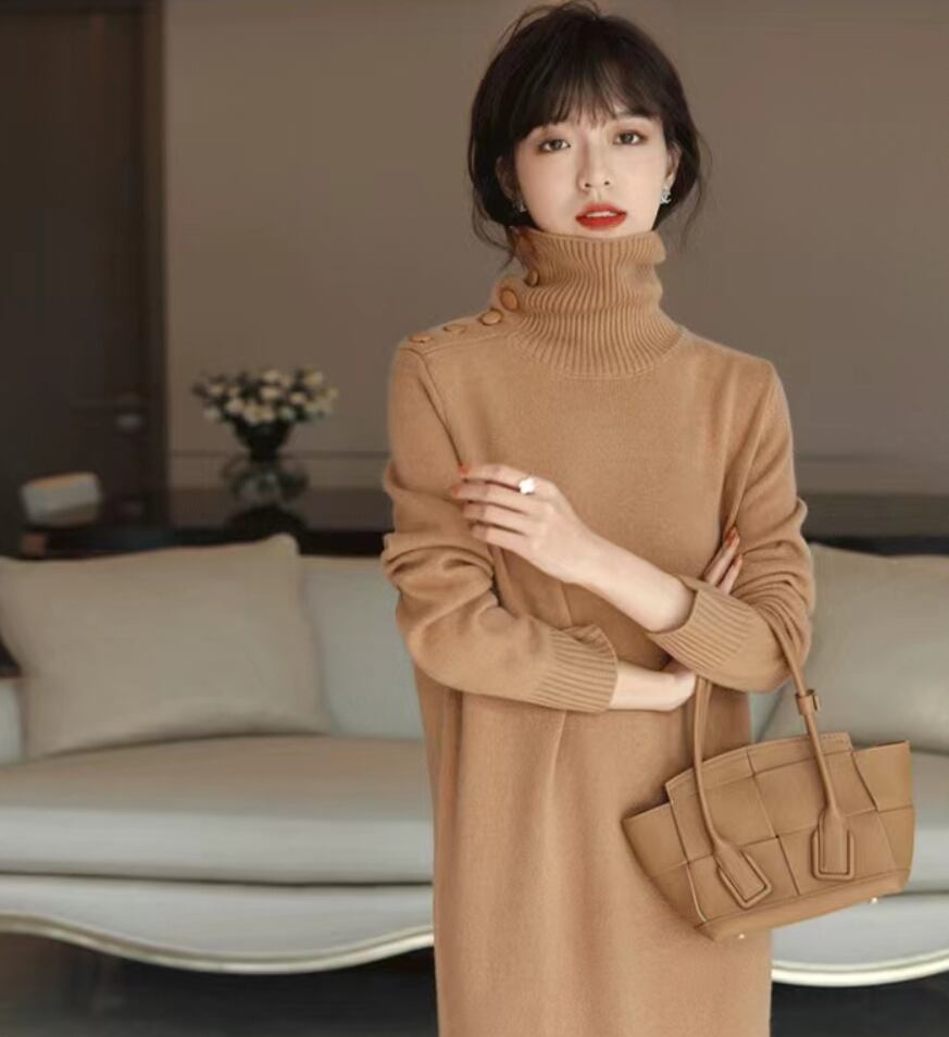 ワンピース デート モテアイテム ニットワンピ ミモレ丈 長袖 ハイネック サイドスリット ウール 大人可愛い きれいめ 上品 おしゃれ かっこいい 大人可愛い ラブリー キュート ガーリー クール モード系 セクシー エレガント 存在感 フォーマル レディース 学生 通学 デート お出かけ 公園デビュー 女子会 お泊まり 休日 運動 ショッピング 普段使い 双子 韓国系 オルチャン ファッション コーデ スタイル 美脚 脚長 トレンド 流行 インスタ映え S M L XL サイズ くすみカラー