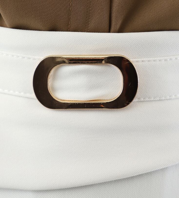 上品なバックルベルトがおしゃれ度アップ。