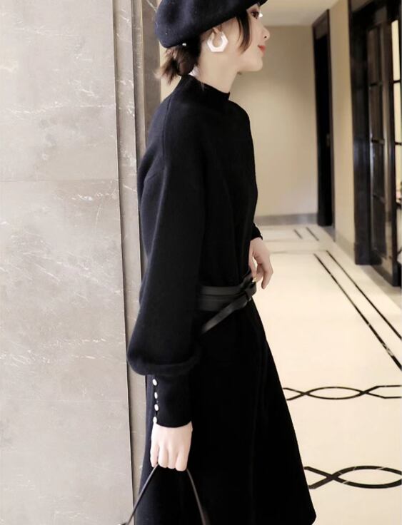 ハイネックでベルトで変化をつけるコーデがおすすめです。