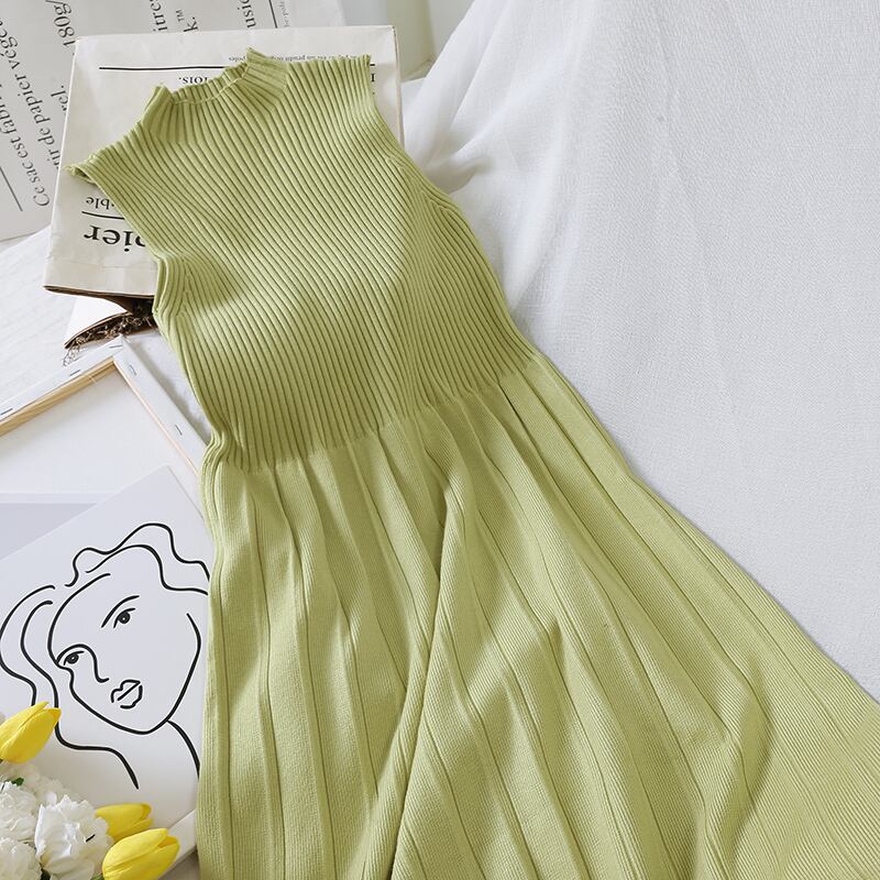 ハイネックニットワンピース カジュアルニットワンピース ノースリーブニットワンピース ミディアム丈スカート スカート ワンピース ニットソー セーター プルオーバー オールインワン ロングスカート フレアスカート ニットスカート 膝下 ロング ロング丈 7分丈 ミディアム丈 袖なし ノースリーブ ハイネック スリム 細身 Aライン 切り替えデザイン スマート ハイウエスト リブニット かわいい 大人可愛い きれいめ シンプル カジュアル 大人 上品 おしゃれ お洒落 大人可愛い 大人女子 こなれ感