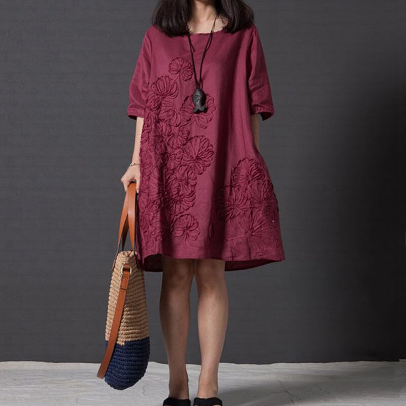大判フラワーの刺繍が美しいワイドなミニワンピース