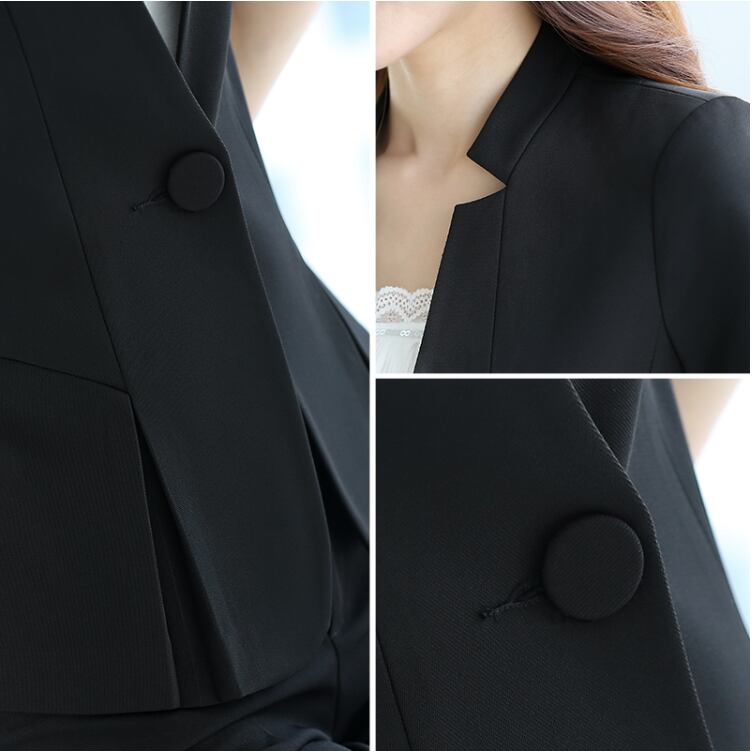 美しい襟元がオシャレな半袖ジャケットのスーツセット