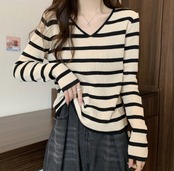 デート モテコーデ トップス ニットソー セーター 袖あり 長袖 萌袖 Vネック かわいい 大人可愛い きれいめ シンプル カジュアル 大人 おしゃれ お洒落 レトロ 大人可愛い 大人女子 こなれ感 ラフ ガーリー 抜け感 ボーダー 10代 20代 30代 40代 50代 60代 レディース オフィス OL 通勤 学生 通学 デート お出かけ 公園デビュー 女子会 休日 イベント 旅行 レストラン ショッピング ご近所 ぶらっと カフェ 着回し 普段使い ファッション コーデ スタイル モテ 定番