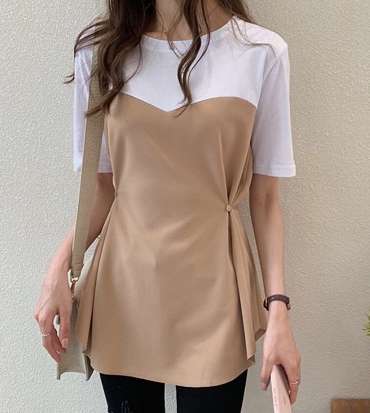 トップス デート カットソー レイヤード 半袖 コットン 大人可愛い きれいめ 上品 おしゃれ かっこいい 大人可愛い ラブリー キュート ガーリー クール モード系 セクシー エレガント 存在感 フォーマル レディース 学生 通学 デート お出かけ 公園デビュー 女子会 お泊まり 休日 運動 ショッピング 普段使い 双子 韓国系 オルチャン ファッション コーデ スタイル 美脚 脚長 トレンド 流行 インスタ映え M L XL 2XL 3XL 4XL サイズ くすみカラー 大人カラー ベイクドカラー