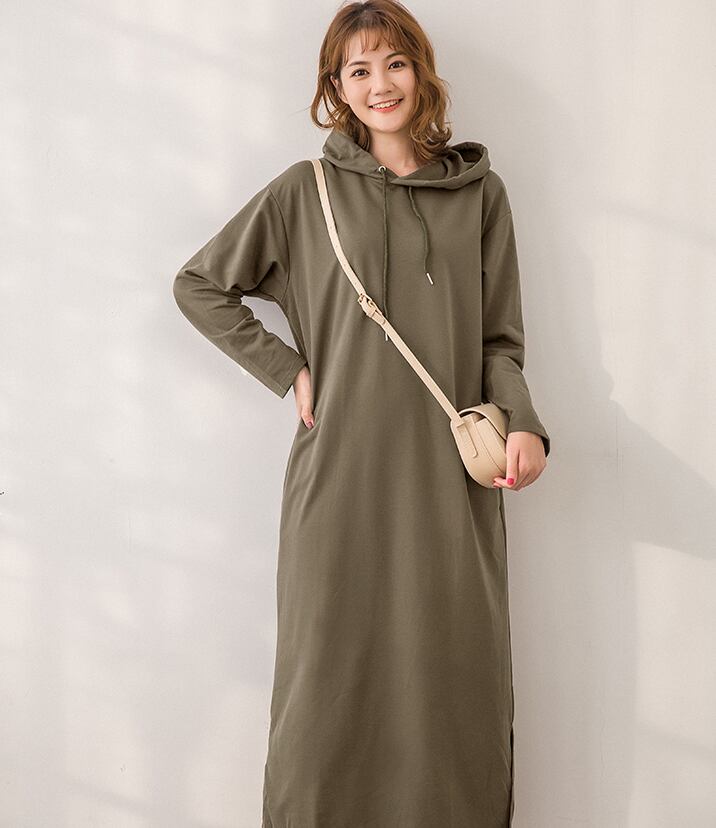 秋冬ロングワンピース カジュアルロングワンピ 長袖ワンピース フード付きオールインワン スカート ワンピース プルオーバー オールインワン ロングスカート コクーンスカート ロング ロング丈 9分丈 アンクル丈 袖あり 長袖 Vネック スリム ストレート Iライン スマート スリット サイドスリット フード付き ポケット かわいい 大人可愛い きれいめ シンプル カジュアル 大人 上品 おしゃれ お洒落 大人可愛い 大人女子 こなれ感 ラフ キュート ガーリー ルーズ クール モード系 エレガント