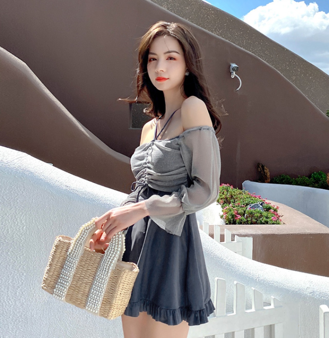 オフショルダー水着 フリルワンピース ガーリーデザイン 水着 スイムウェア モノキニ ワンピース水着 ショートパンツ ハーフパンツ ワンピース オフショルダー オフショル パッド付き 体系カバー 二の腕カバー 長袖 リボン チュール シフォン フリル レースアップ フリンジ ハイウエスト 編み込み 透け感 シャーリング 胸元 谷間 谷間魅せ メッシュ メッシュ素材 かわいい 大人可愛い きれいめ セクシー sexy シンプル カジュアル ナチュラル ゴージャス 華やか 大人 大人っぽい おしゃれ お洒落