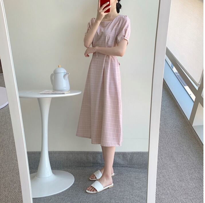 パフスリーブワンピース サマーワンピース バックリボンスカート チェック柄ワンピース スカート ワンピース プルオーバー オールインワン ロングスカート フレアスカート 膝下 ロング ロング丈 7分丈 ミディアム丈 袖あり 半袖 5分袖 五分袖 パフスリーブ スクエアネック スリム 細身 Aライン 切り替えデザイン スマート ハイウエスト かわいい 大人可愛い きれいめ シンプル カジュアル 大人 上品 おしゃれ お洒落 レトロ 大人可愛い 大人女子 こなれ感 ラブリー キュート ガーリー モード系